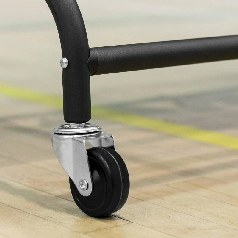 The weatherproof ball trolley rack features a wide base for rack stability while the thick steel tubing maximises the sturdiness and rigidity that this trolley for sports balls features. This is a feature of the entire framework, made from durable galvanised steel meaning the mobile PE storage trolley is suitable for both indoor and outdoor use thanks to its excellent weatherproof properties.